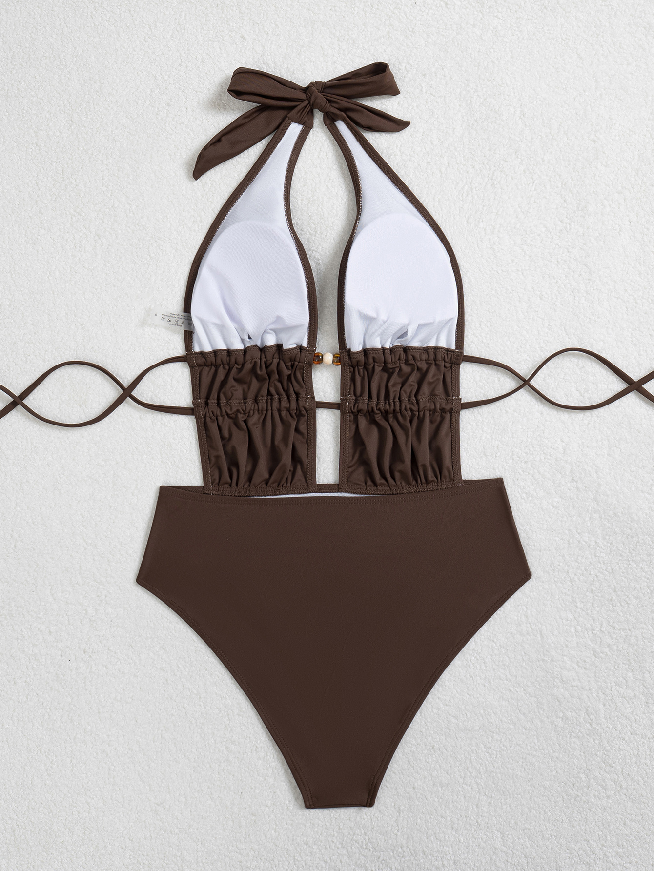 Bikini Solid Color Lace up One Piece Sexy Backless Siamese Bikini Swimsuit