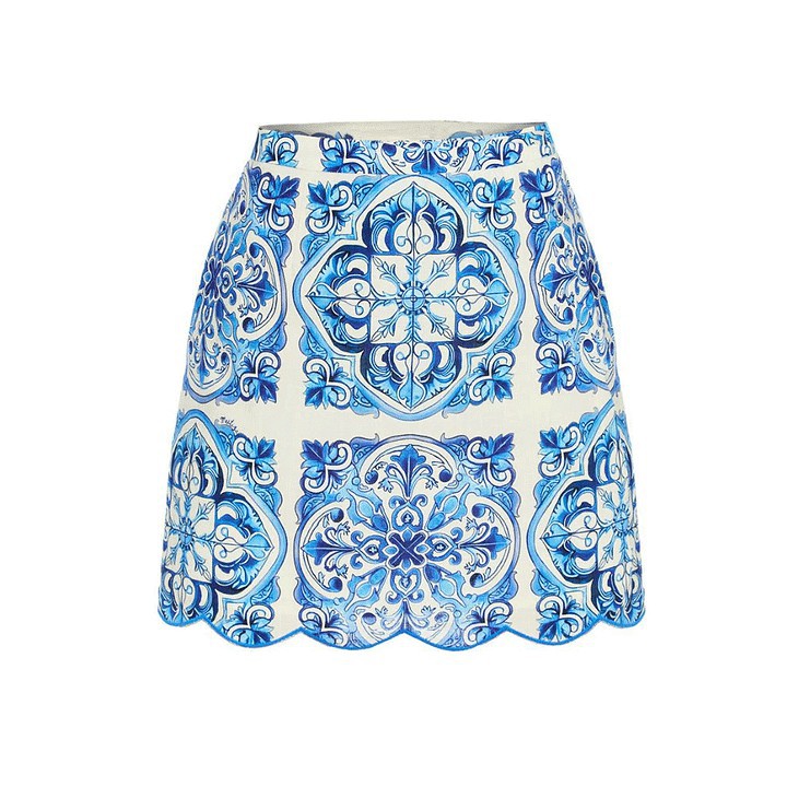 Blue Printed One Piece Swimsuit Women Vacation Beach Swimsuit