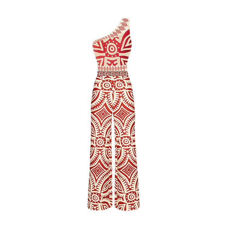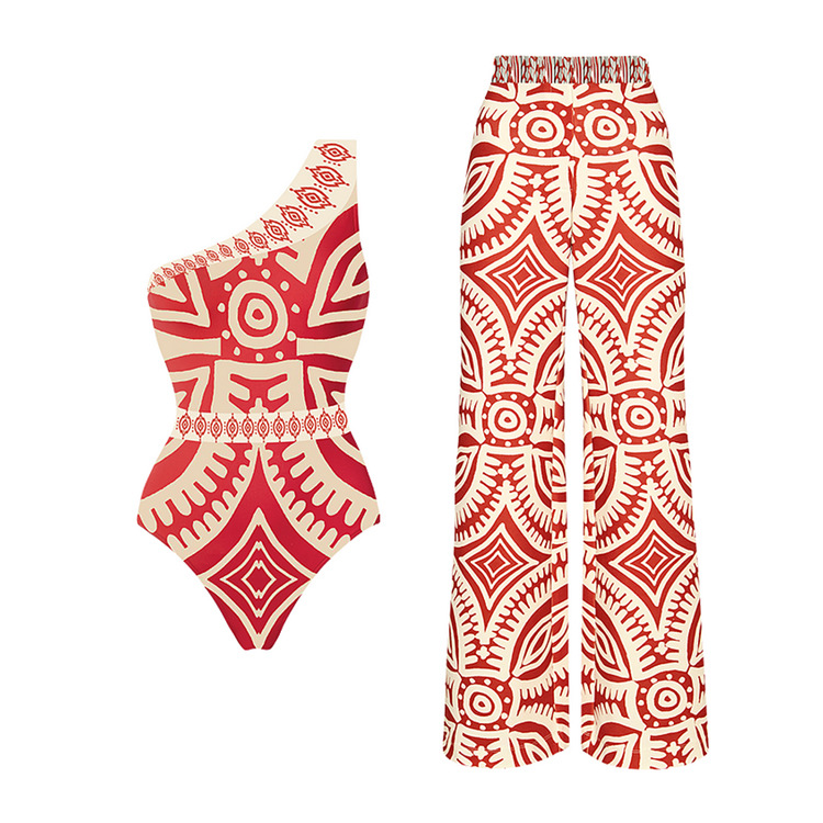 Ethnic Sexy Oblique Shoulder One Piece Swimsuit Women Beach Pants