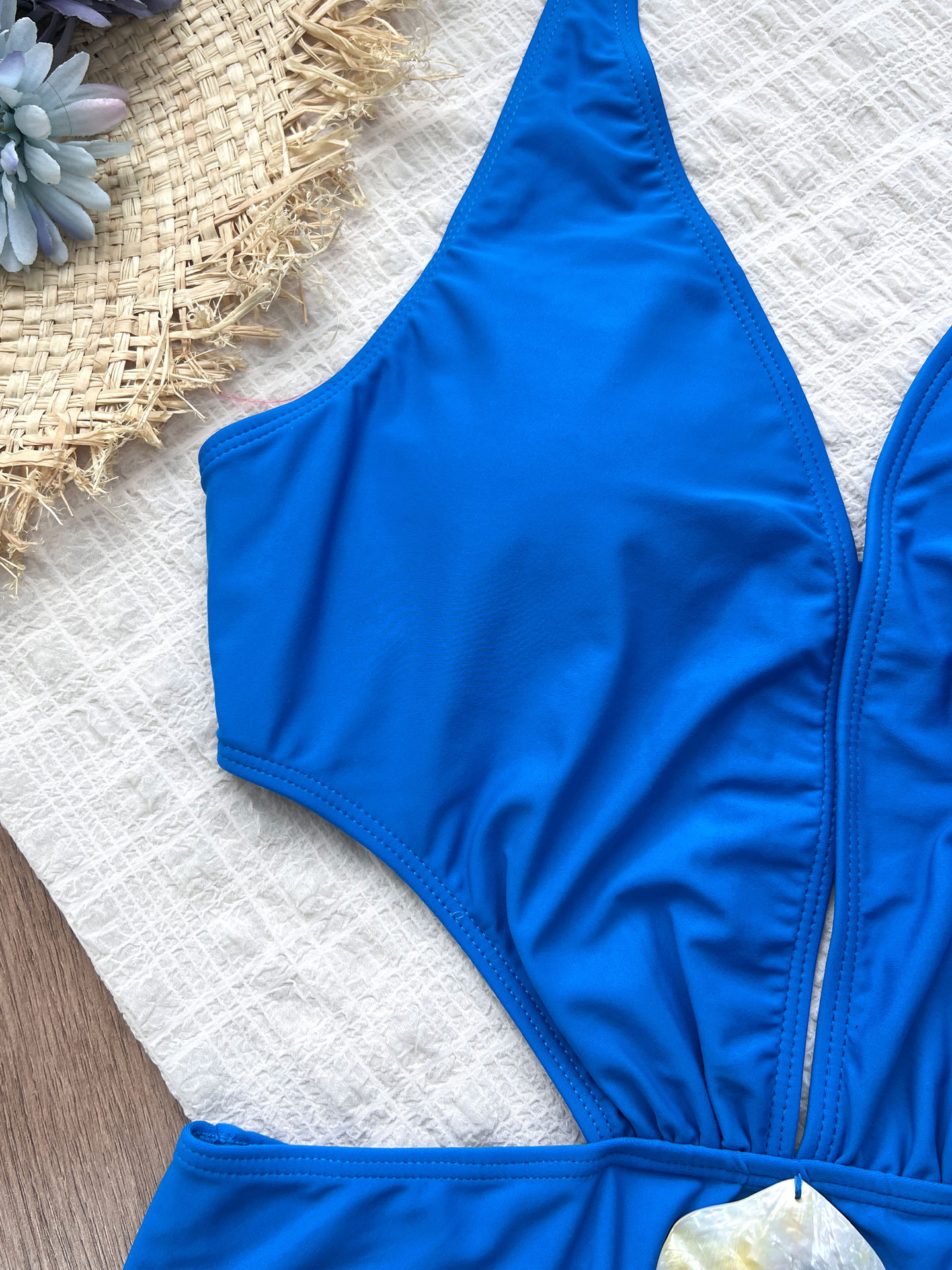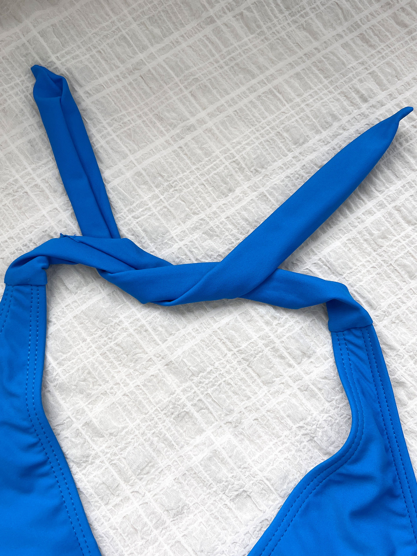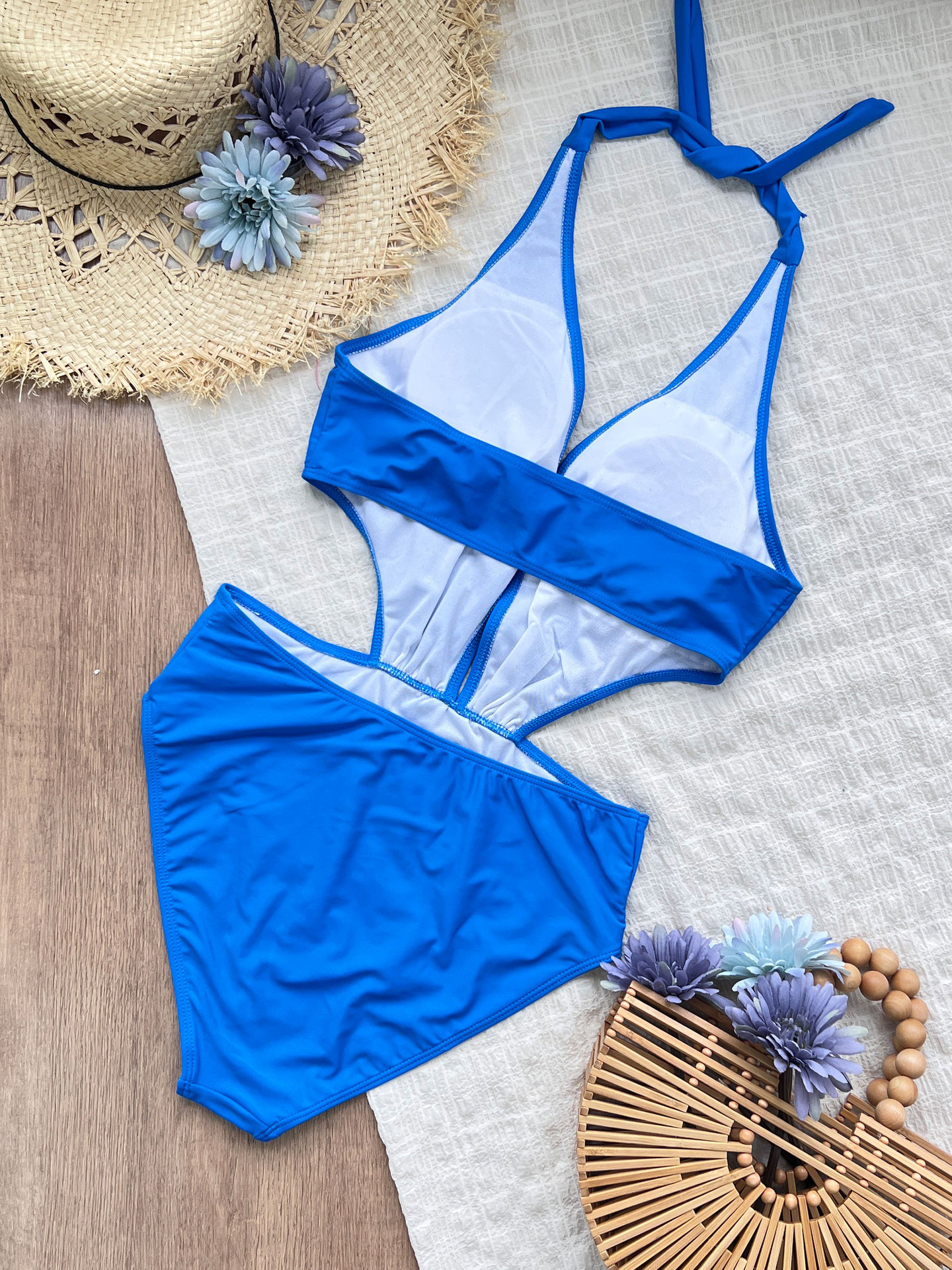 Halter Strap Slip on One Piece Bikini Deep V Plunge Swimsuit Women Solid Color High Waist Swimsuit