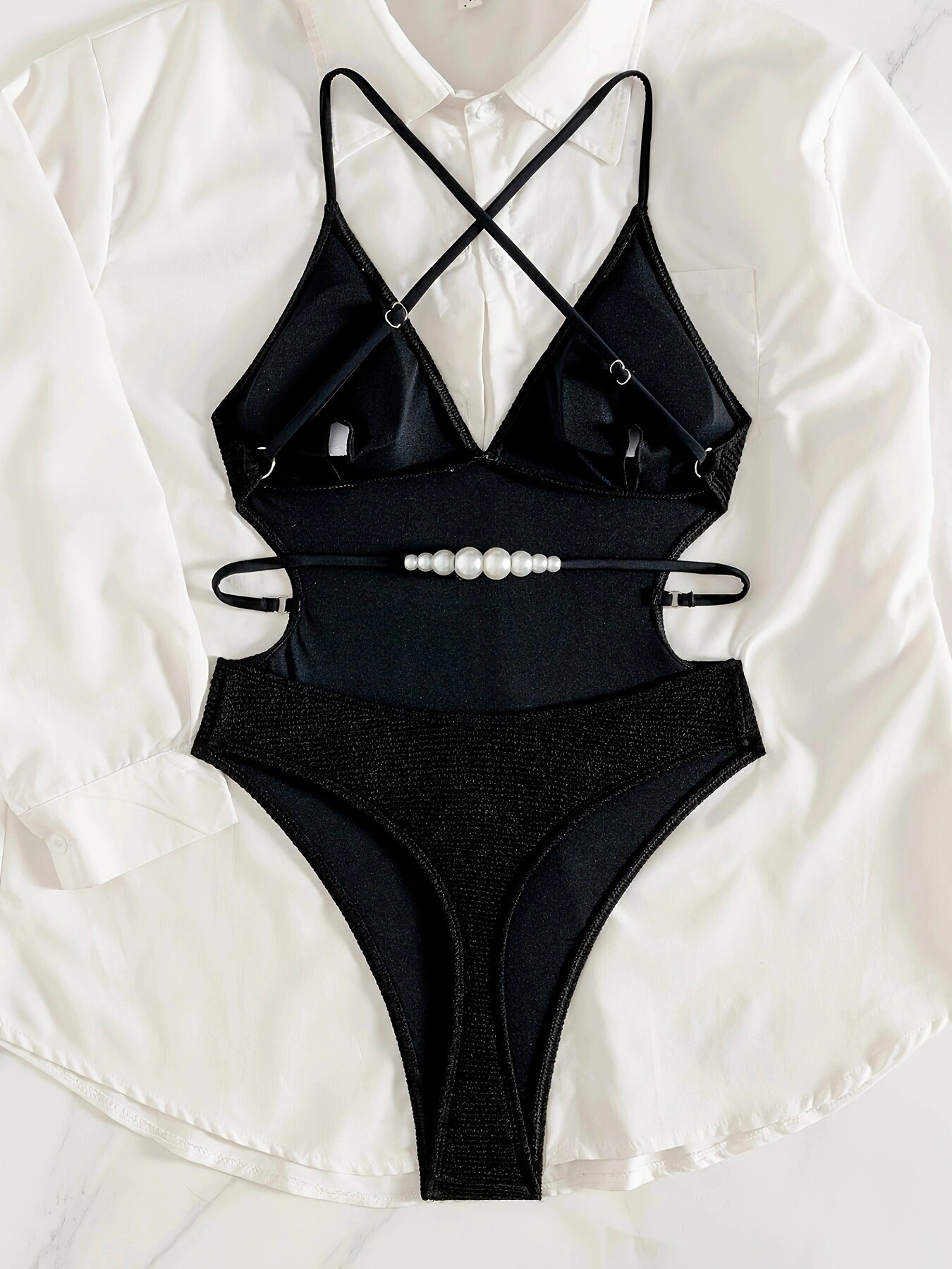 Ladies Sexy Solid Color One Piece V neck Backless Sexy Swimsuit