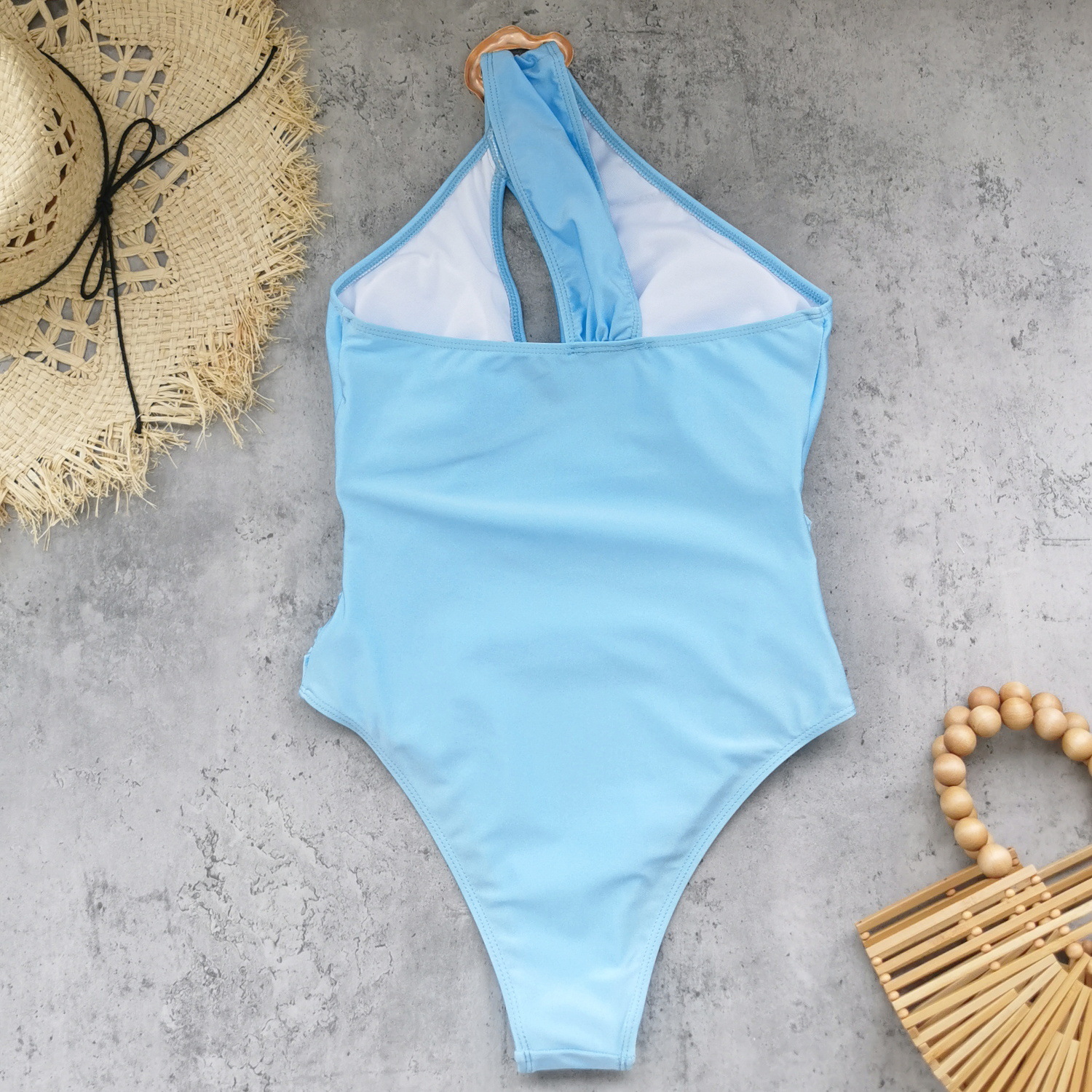 One Shoulder Hollow Out Cutout out Solid Color One Piece Swimsuit Women Skirt Two Piece Sets Swimsuit