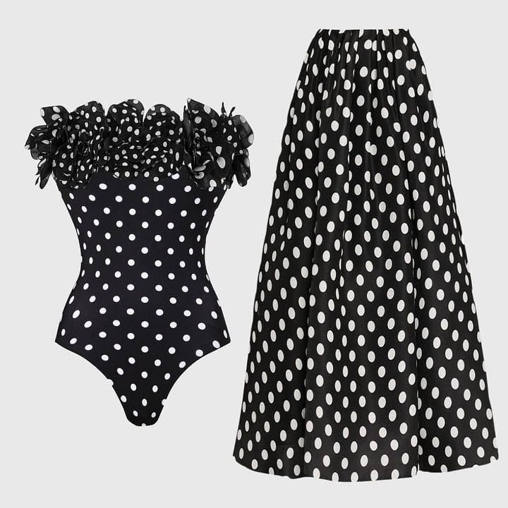 Polka Dot One Piece Swimsuit Women Vacation Beach Set