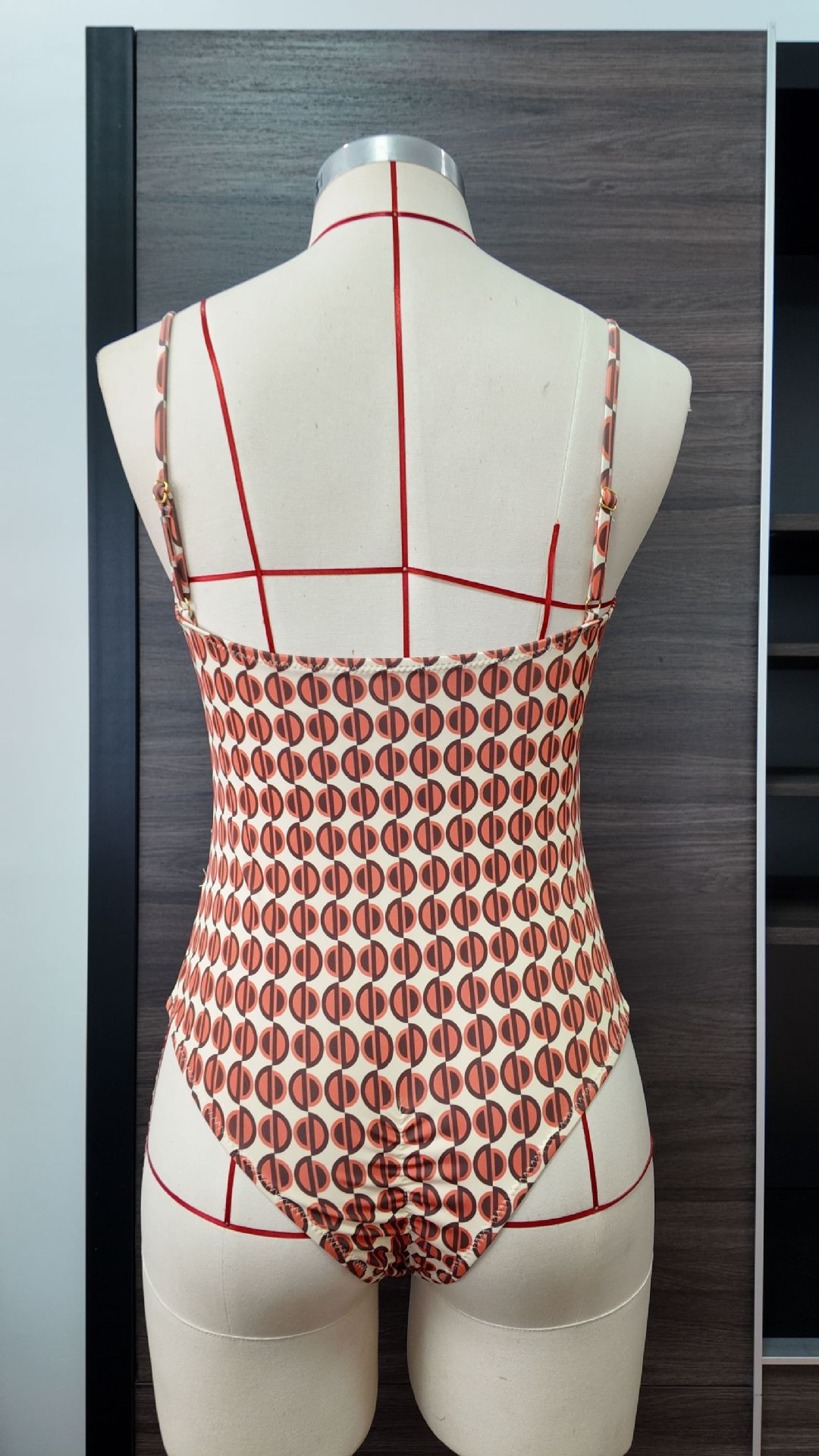Printing Slim Fit One Piece Swimsuit Women Sexy Slimming Metal Accessories Bikini