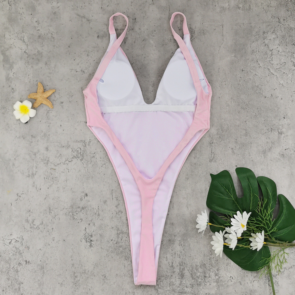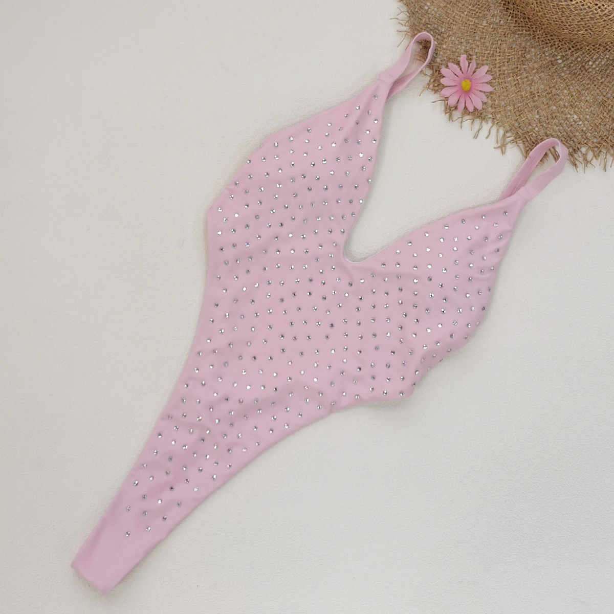 Sexy Backless One Piece T Shaped High Slit Triangle One Piece Swimsuit Women Solid Color Diamond