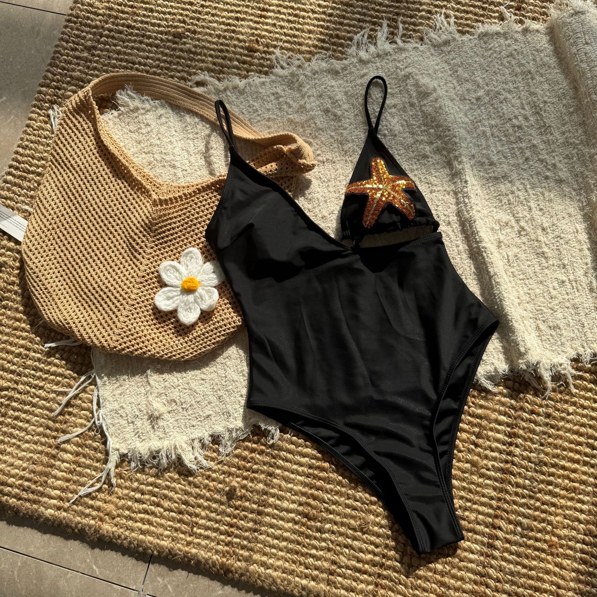 Sexy One Piece Swimsuit Women Solid Color Five Pointed Star Swimsuit