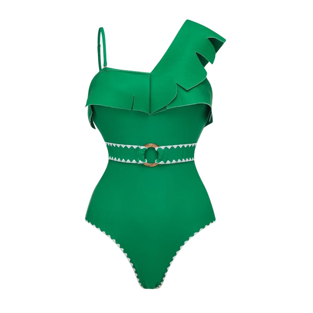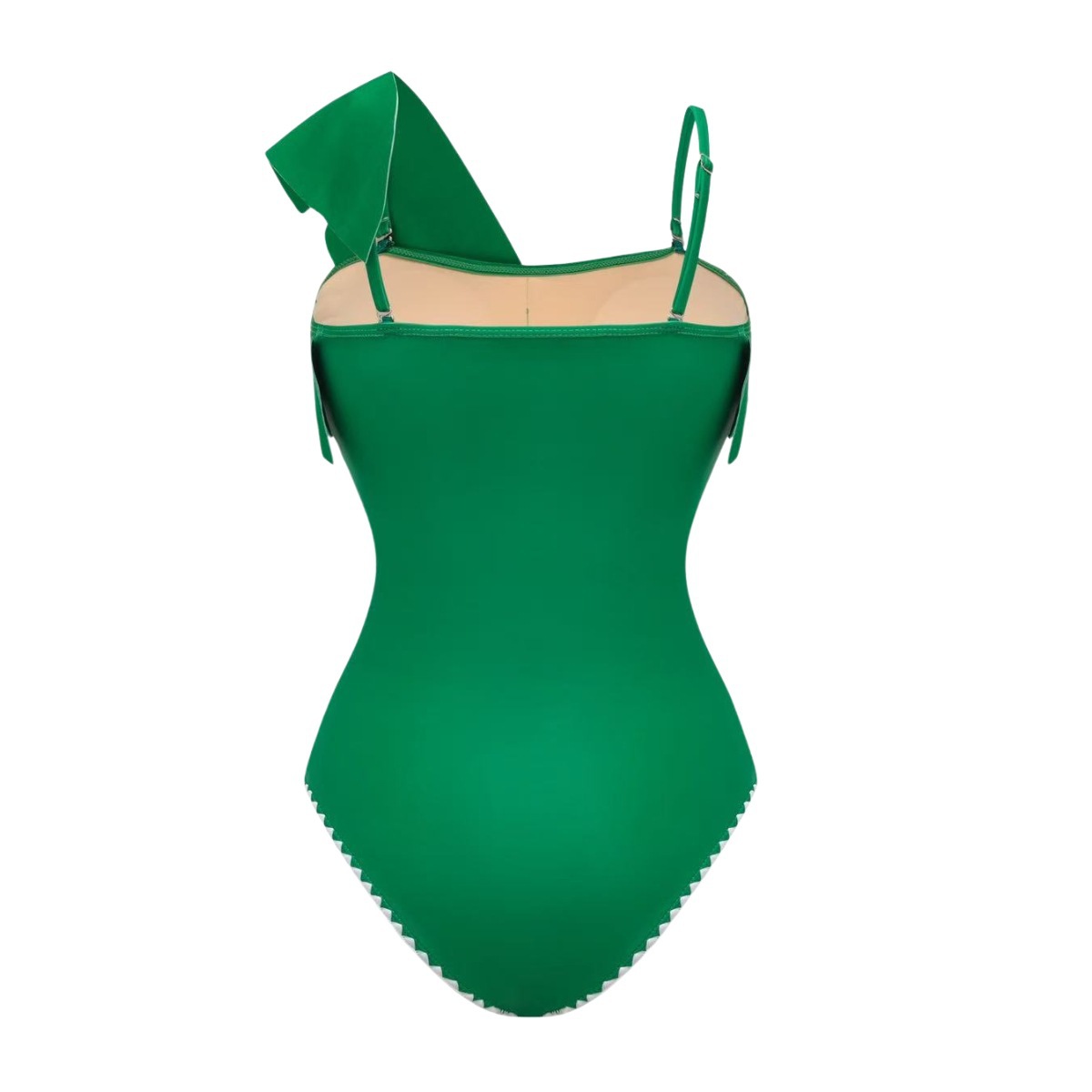 Swimsuit Green One Shoulder Ruffled Design One Piece Swimsuit Women