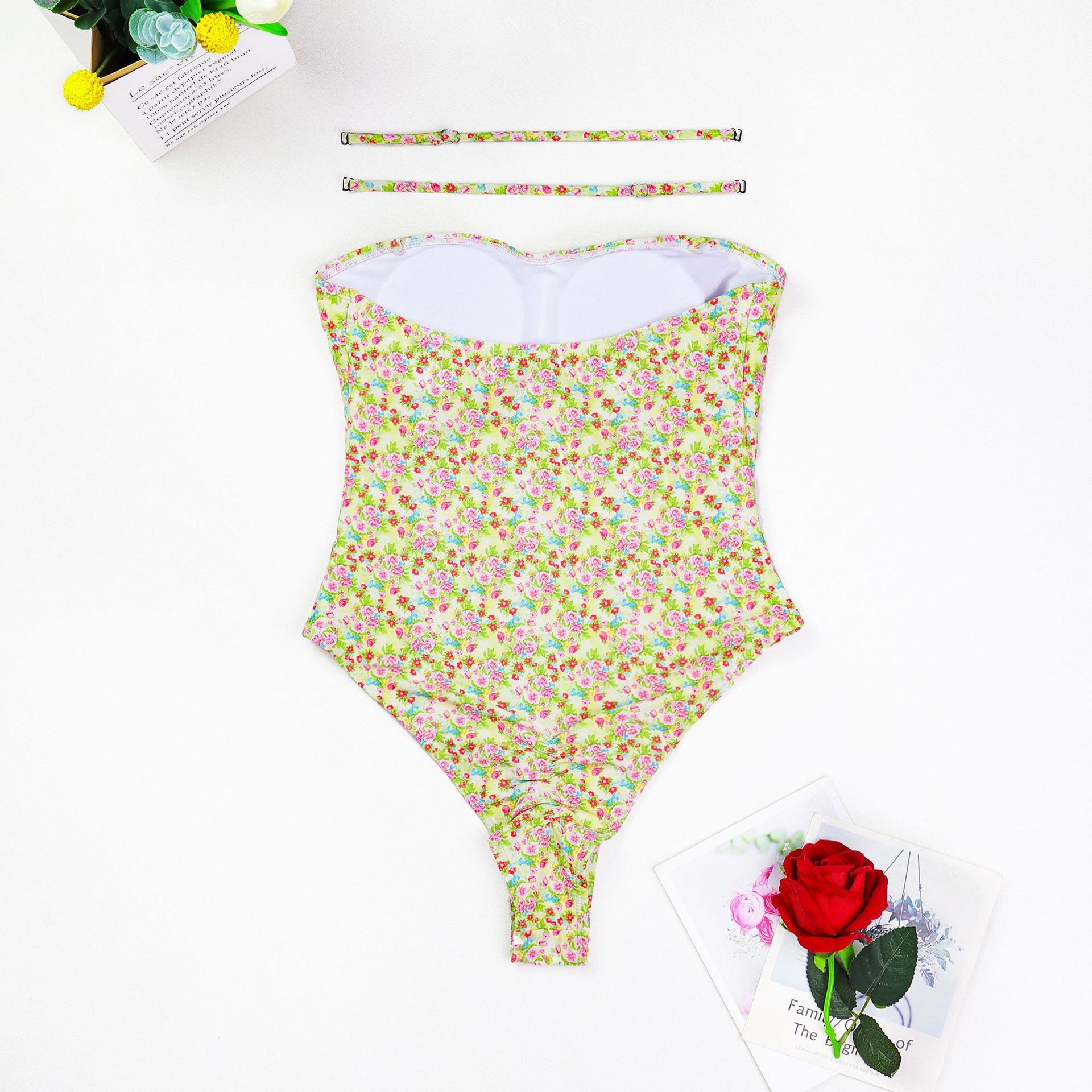Swimwear Floral One Piece Swimsuit Sexy Women Triangle Bikini Swimsuit