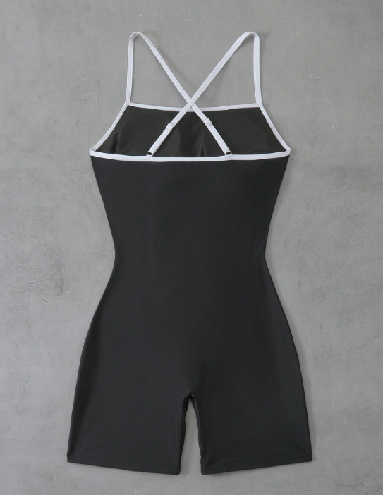 Women Beach Ladies One Piece Solid Color Tight Cross Back Swimsuit Summer Sexy