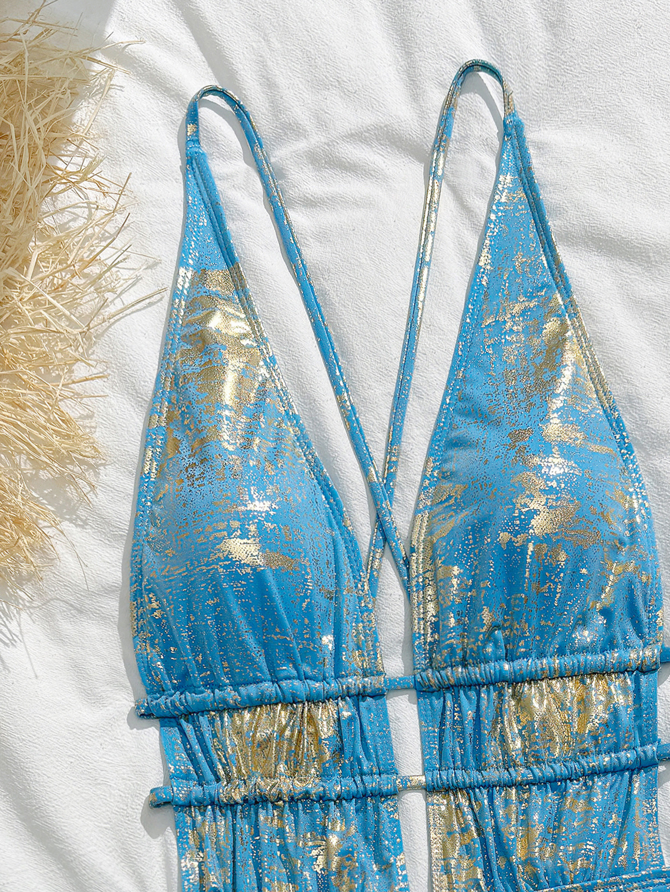 Women Swimsuit Hollow Out Cutout Thin Bronzing One Piece Swimsuit Bikini
